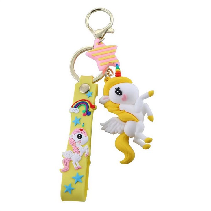 Силиконовият ключодържател е изработен от силиконова обработка, мек, еластичен и издръжлив; неговият модел е интегриран с китката. Ключодържателят за раница за момичета има известна еластичност, а релефната форма на цветния еднорог е много ярка и нежна.
